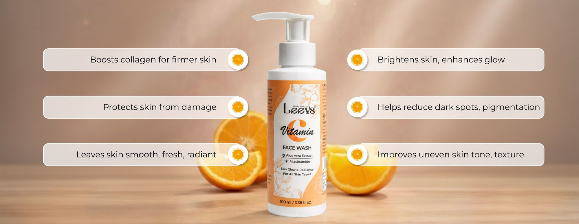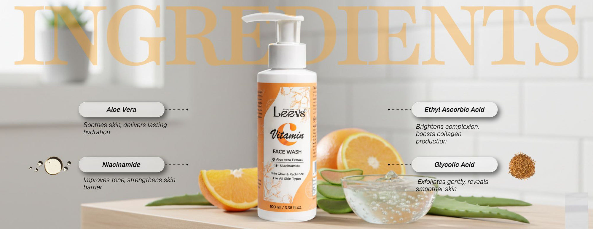 Leevs Vitamin C Face Wash gently removes dirt and excess oil while brightening dull skin and redu...